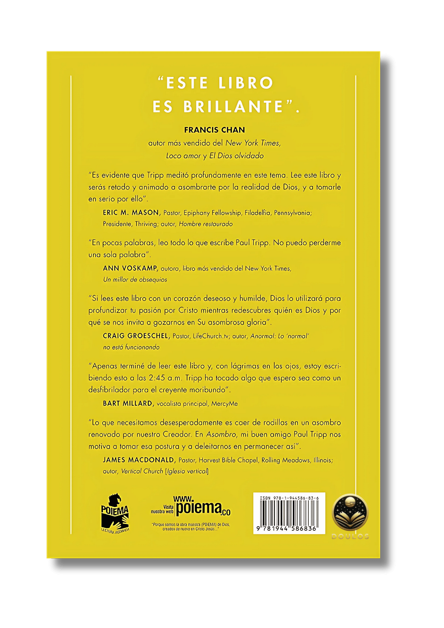 Vivimos atrapados en la rutina, en lo cotidiano, y con facilidad olvidamos lo majestuoso, glorioso y profundamente impactante que es nuestro Creador. En Asombro, Paul David Tripp nos confronta con una verdad poderosa: el problema de muchos creyentes no es falta de conocimiento, sino falta de asombro. Y cuando perdemos la capacidad de maravillarnos, nuestra relación con Dios se vuelve seca, predecible y distante.