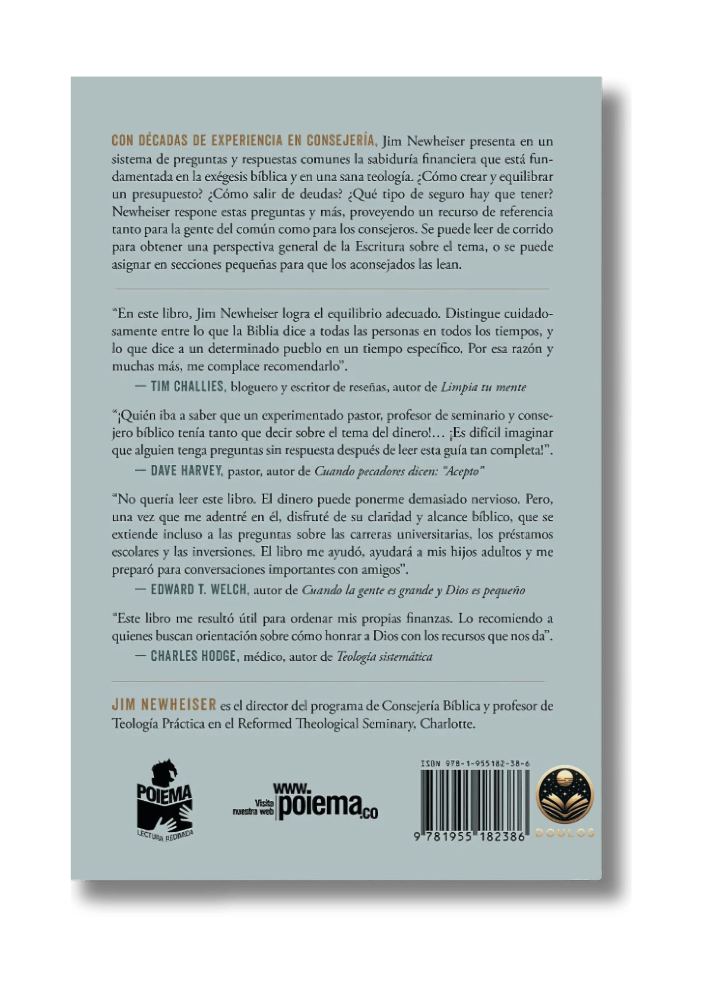 Con décadas de experiencia en consejería bíblica, Jim Newheiser ofrece en este libro respuestas claras y prácticas a las preguntas más comunes sobre el manejo del dinero, la deuda y las finanzas personales, fundamentadas en la sabiduría de la Escritura y una sana teología.